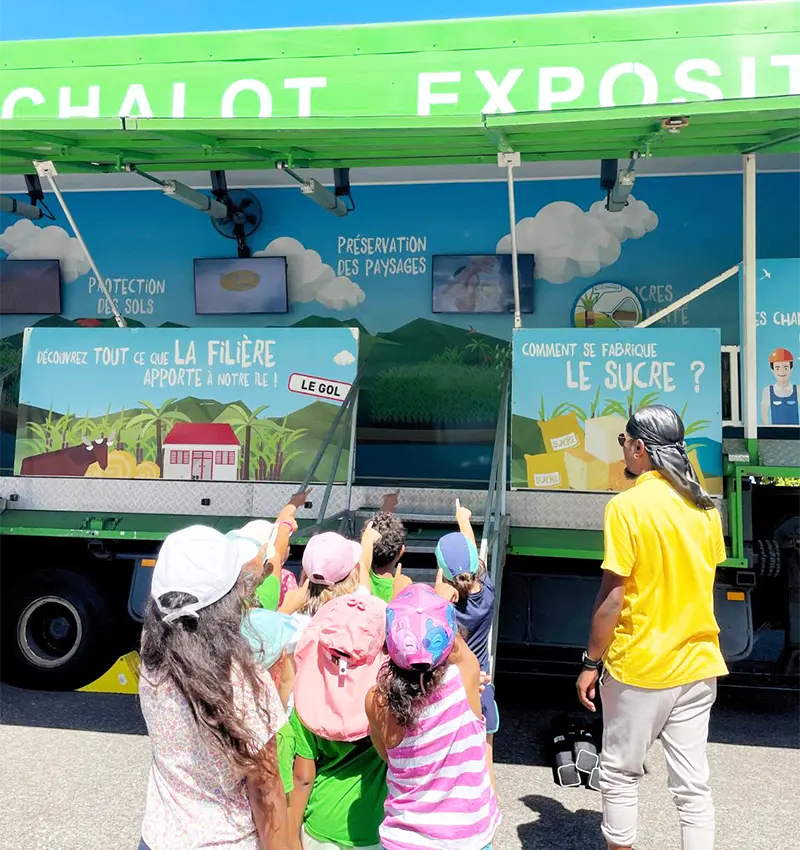 Animé par nos intervenants, la visite est ponctuée de jeux, de supports ludiques, et de vidéos comme le dessin animé « Les cannes fantastiques ». L’exposition permet aussi aux équipes enseignantes de travailler avec leurs élèves sur l’économie circulaire et sur le rôle clé de la filière dans le développement économique, social et environnemental de La Réunion.