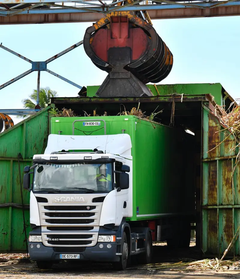 Les cannes à sucre sont livrées par les agriculteurs directement aux sucreries ou sur les 11 plateformes de réception réparties sur tout le territoire. Les cannes à sucre sont ensuite acheminées des centres de réception aux sucreries grâce à une flotte d’ensemble routiers appelés « Cachalots ».