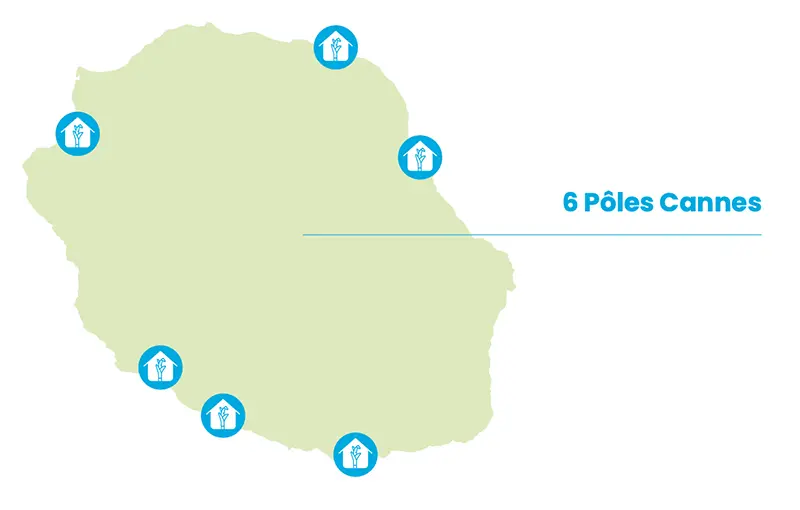 La filière dispose de 6 Pôles Cannes, répartis sur toute l’île.