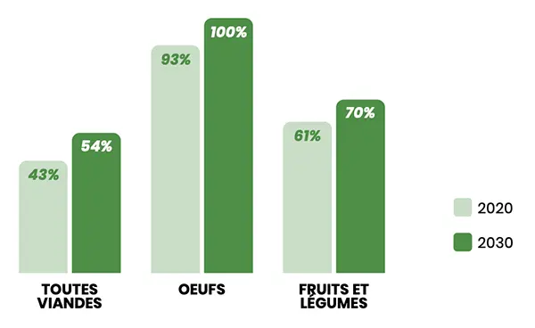 A horizon 2030, le taux de couverture des besoins alimentaires (frais, transformé, congelé) par les filières locales pourrait atteindre :