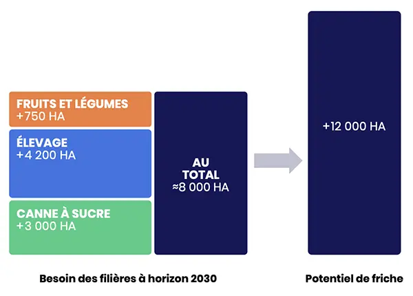Ainsi, aujourd’hui les friches agricoles seraient suffisantes pour couvrir les besoins de développement des filières d’élevage, fruits et légumes et de la canne à sucre à horizon 2030.